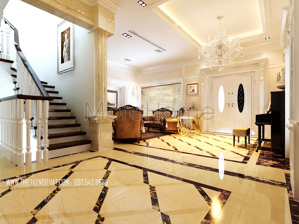 Thiết kế nội thất biệt thự Vinhomes Riverside anh Tuấn sang trọng với phong cách tân cổ điển.