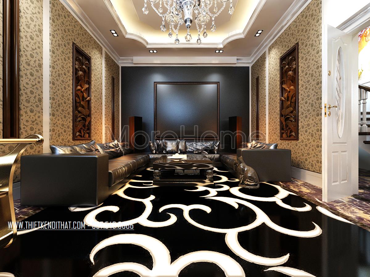Ngoài sự thoải mái và thư giãn nhẹ nhàng, gia chủ cũng không quên dành một căn phòng giải trí đầy sôi động. Với các thiết kế âm thanh hiện đại được đầu tư kỹ lưỡng cùng với thiết kế nội thất tone trầm cá tính, đây thực sự là một không gian giải trí đầy hứa hẹn.