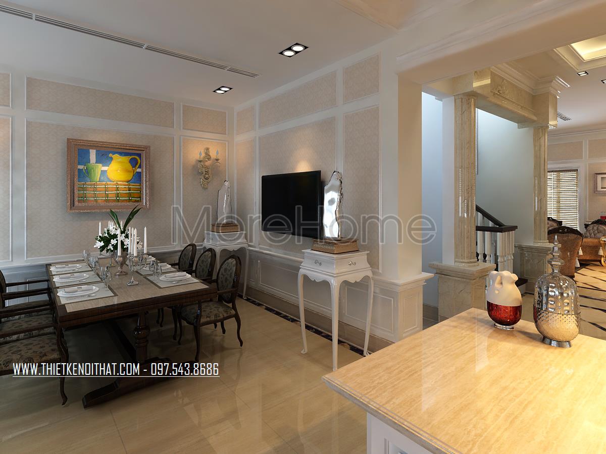 Thiết kế nội thất biệt thự Vinhomes Riverside thanh lịch tao nhã trong thiết kế nội thất phòng ăn