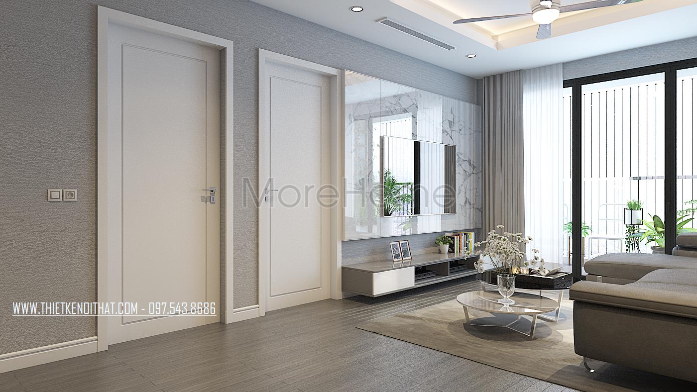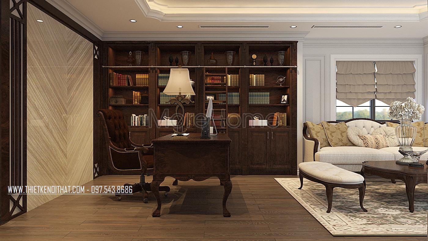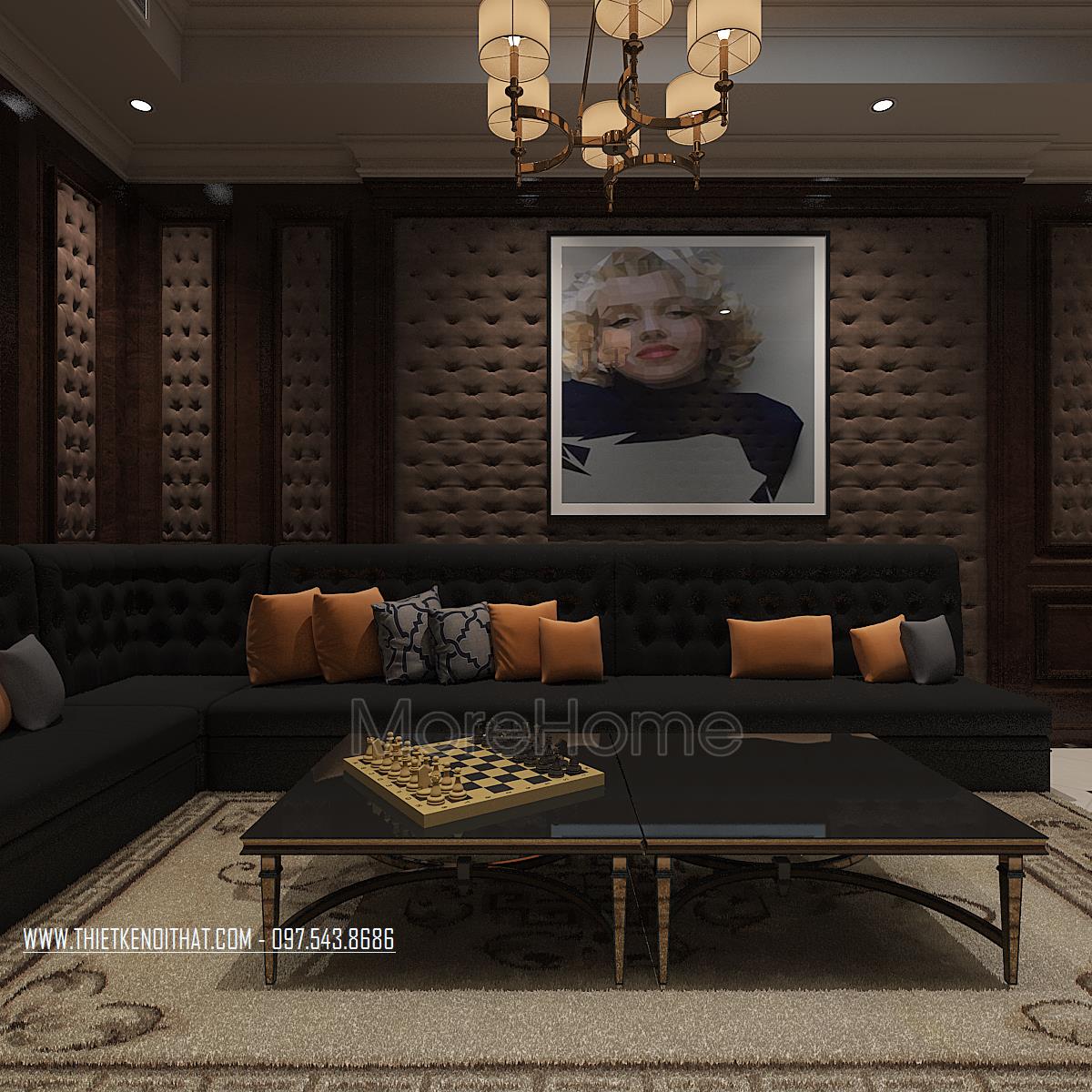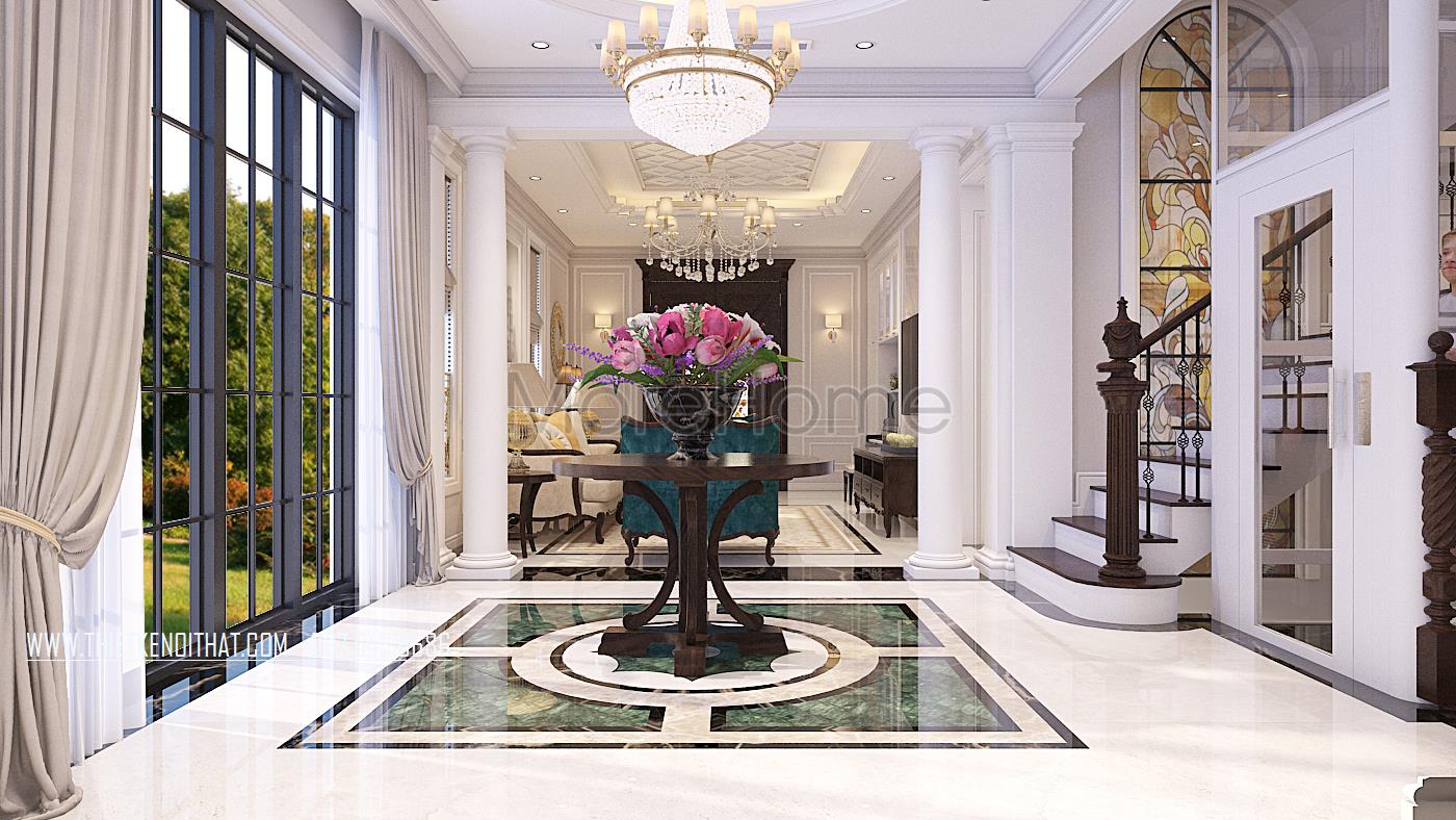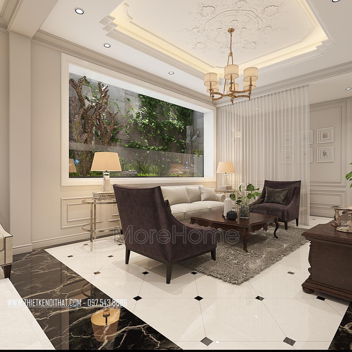 Thiết kế nội thất biệt thự phong cách tân cổ điển thuộc khu tổ hợp cao cấp Vinhomes Riverside là một trong những căn hộ nổi bật với đặc điểm kiến trúc riêng, khắc học được rõ sở thích và cá tính của gia chủ. Ngay từ thiết kế nội thất phòng khách kiến trúc sư đã gây ấn tượng bởi các đường nét và chi tiết tỉ mỉ, tinh tế. Thiết kế ghế sofa được kiến trúc sư lựa chọn có kích cỡ khá rộng rãi, tone màu xanh coba cổ điển kết hợp với sắc trắng tinh khổi cũng là điểm đặc biệt thu hút. Thay vì việc sử dụng các đường thẳng hay các khối hình rõ ràng như thiết kế nội thất phong cách hiện đại, chúng ta có thể dễ dàng nhận ra kiến trúc sư sử dụng rất nhiều đường cong hay chi tiết trạm khắc cầu kỳ ngay từ các chi tiết nhỏ như ghế sofa, đèn bàn, bàn nước, hay gối tựa,…