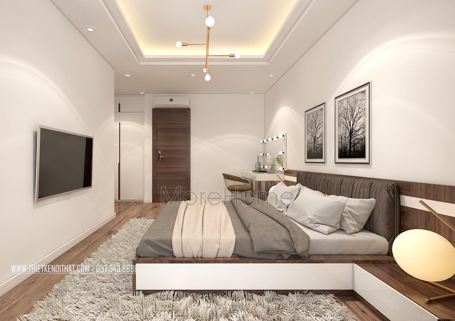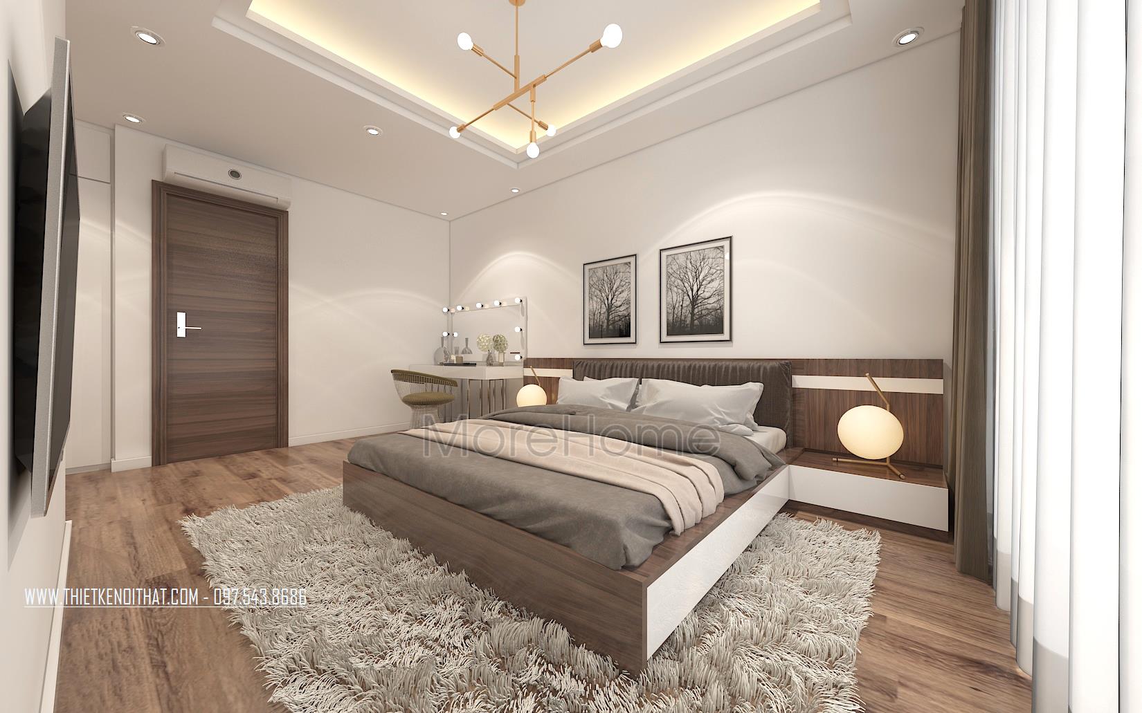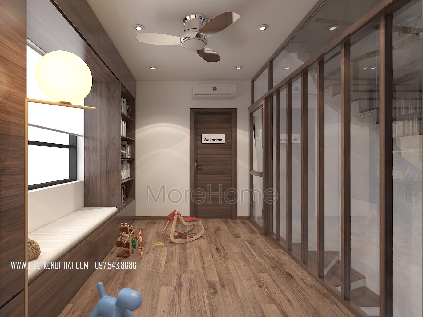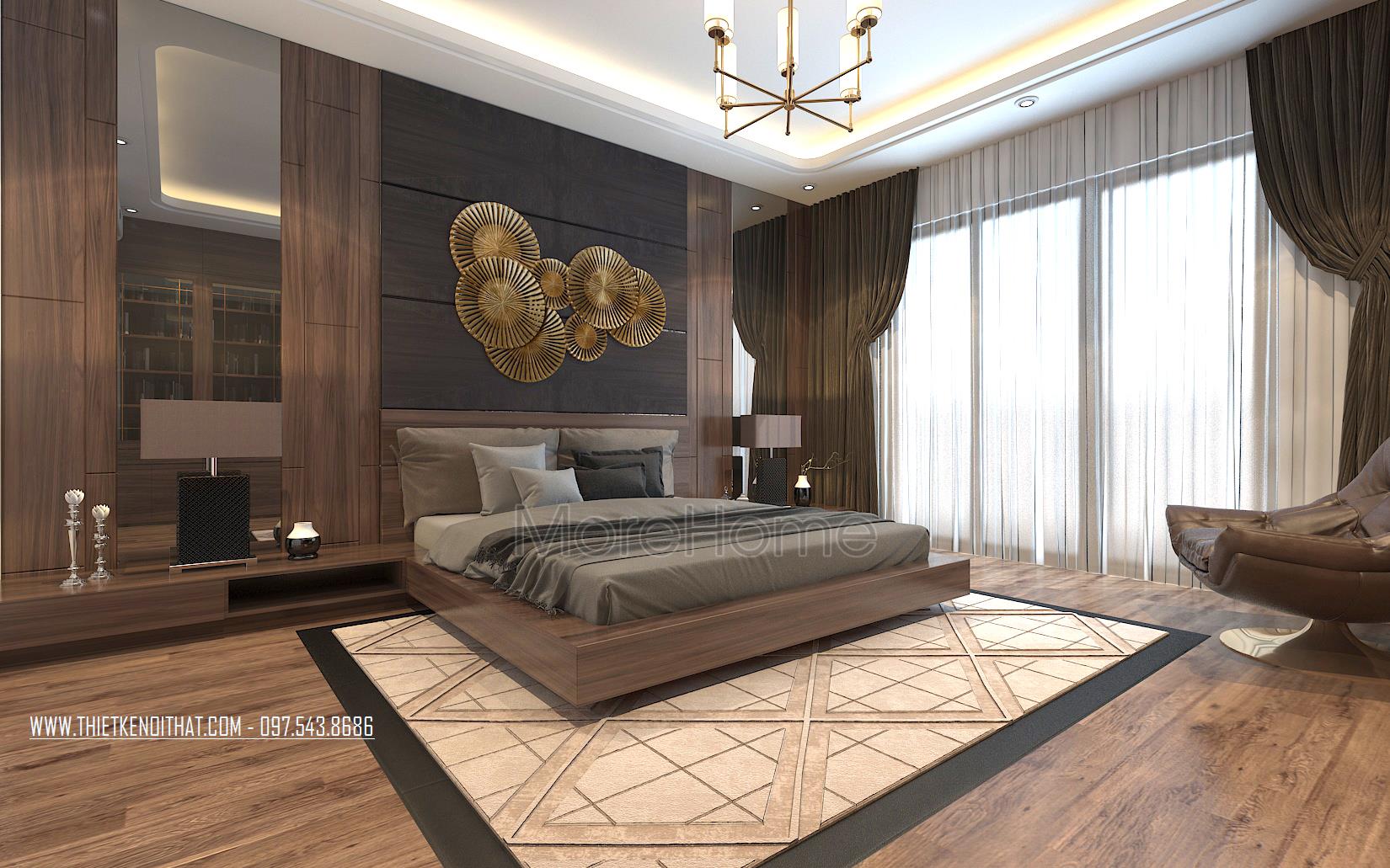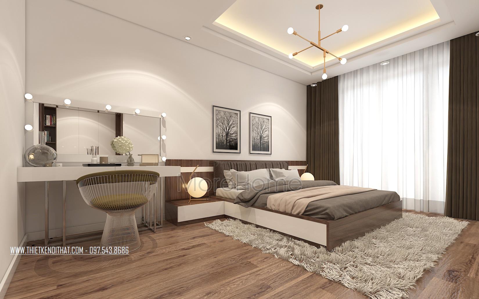 Tiếp theo là thiết kế nội thất phòng ngủ hiện đại. Tone màu mà kiến trúc sư ưu ái sử dụng cũng là tone màu nâu ấm áp. Một điểm đặc biệt của thiết kế này là thay vì vận dụng nhiều thiết kế tủ gỗ, kiến trúc sư ứng dụng các thiết kế giản đơn, giúp tăng thêm diện tích đa năng cho gia chủ. Đối với các thiết kế nội thất phòng ngủ cho trẻ nhỏ, các màu sắc trẻ trung và tinh nghịch được sử dụng đề phù hợp hơn với tính cách và sở thích của trẻ.