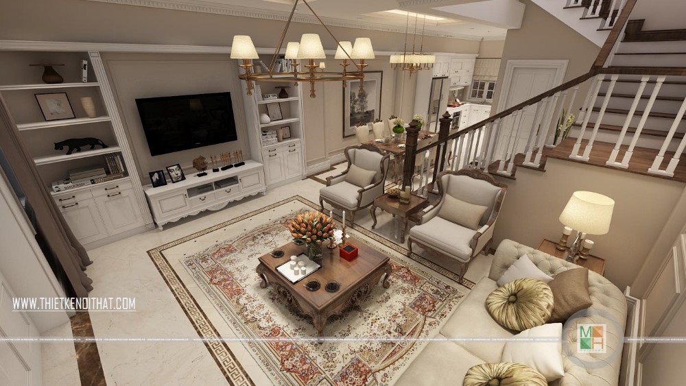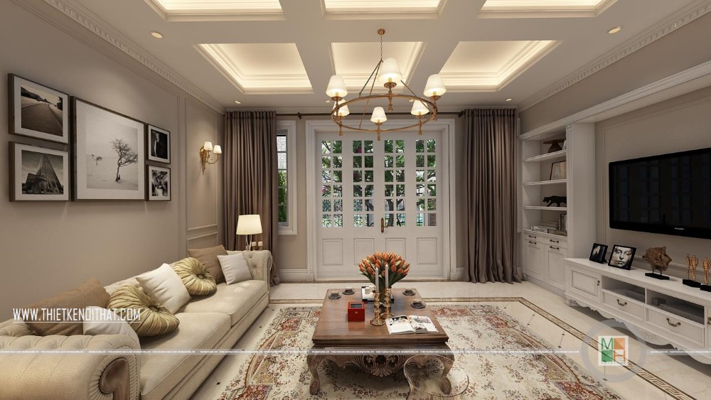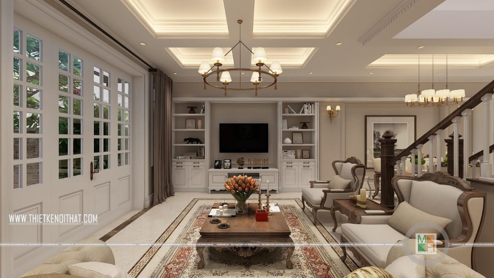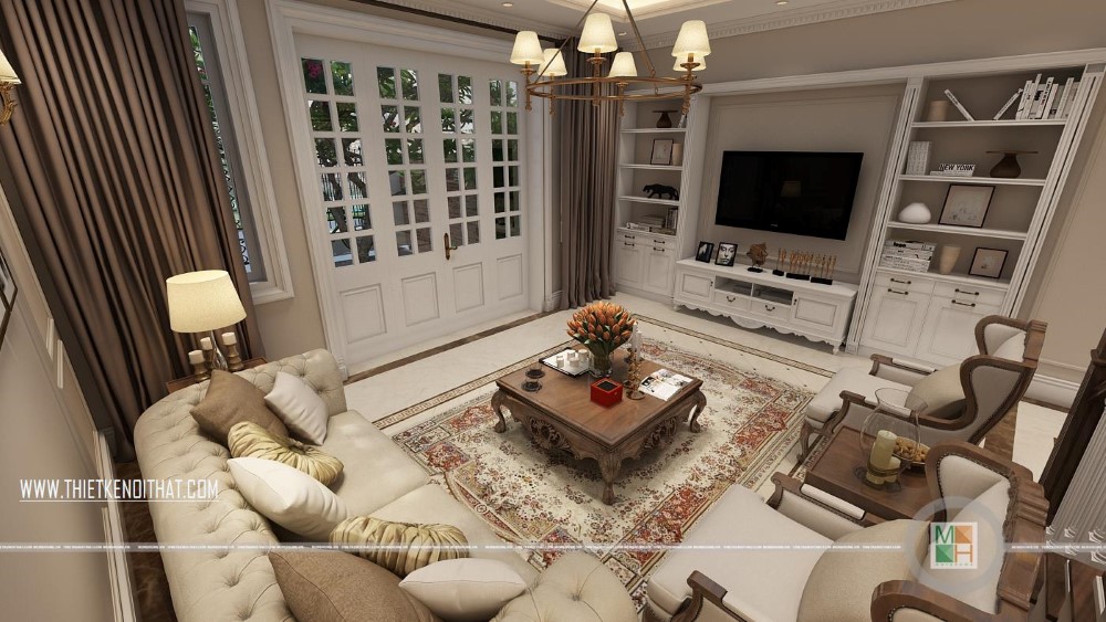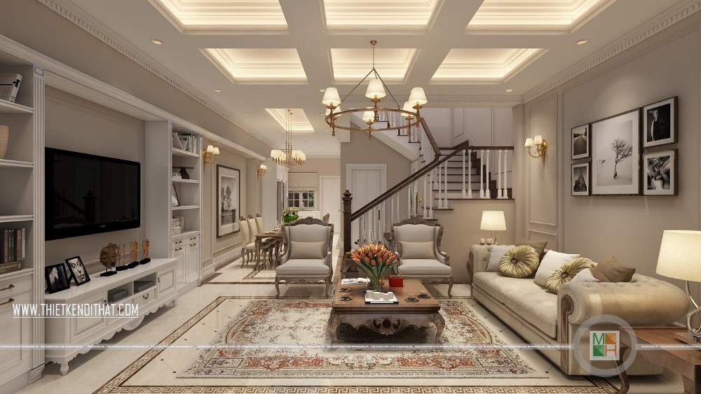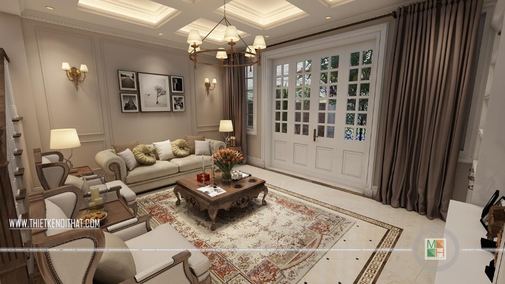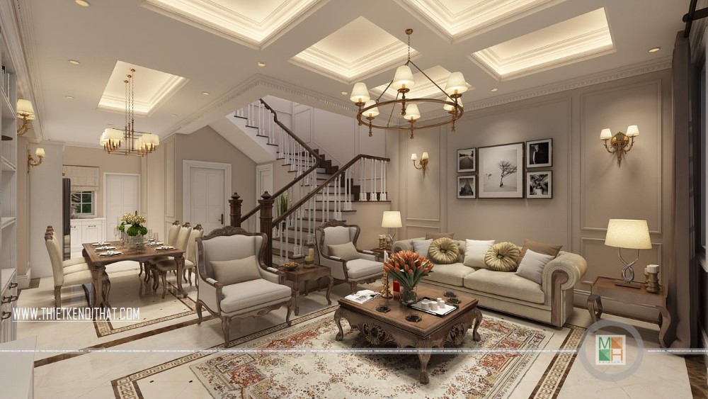 Cùng với các thiết kế nội thất hiện đại, hay kiến trúc nội thất Bắc Âu thì phong cách tân cổ điển cũng là một trong những phong cách thiết kế được ưu chuộng và đánh giá cao về cả tính thẩm mỹ và tính công năng. Với các thiết kế tân cổ điển, kiến trúc sư thiên về sử dụng tông màu trầm, lạnh như màu ghi xám hay vàng nâu. Bên cạnh đó, điểm nổi bật của phong cách thiết kế này chính là các đường cong và sự hài hòa toát ra từ các đường nét trạm trổ trên các món đồ trang trí.