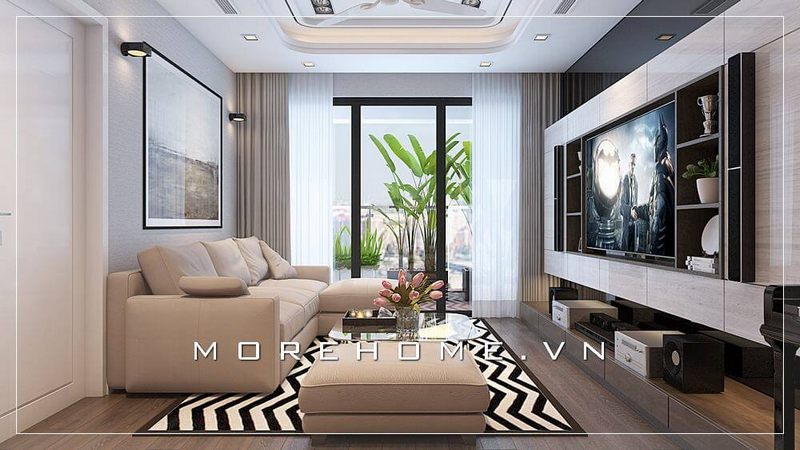 Trang trí nội thất chung cư với gam màu trắng be chủ đạo góp phần tạo nên một không gian hiện đại, tinh tế và cao cấp.