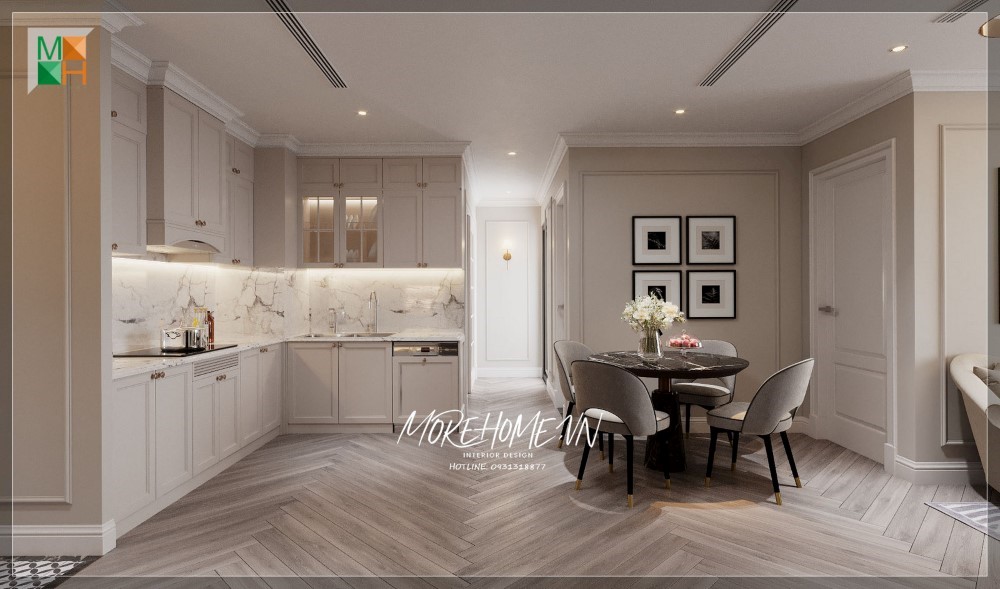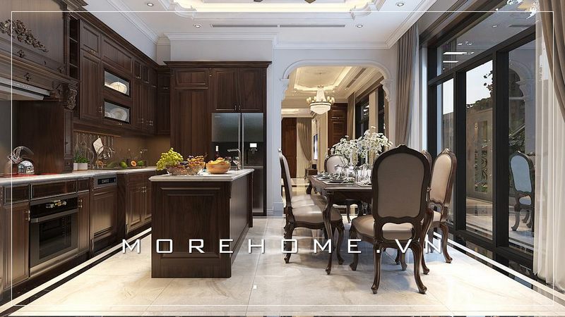 Thiết kế phòng ăn bếp để cung cấp không gian thoải mái và tiện lợi cho việc sử dụng hàng ngày.
